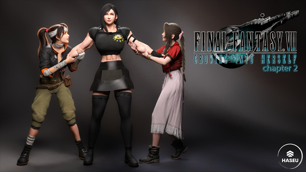 Step into the second chapter, where the lines between emotion and strength intertwine. Witness Tifa's incredible transformation, where her physical growth mirrors her inner resolve and ambition. This chapter highlights Tifa's journey of empowerment, emphasizing her impressive physique and strength. Join Tifa in the gym, where each lift becomes a true spectacle of strength and endurance, with her muscles expanding and defining themselves in an intense and captivating manner. This display goes beyond a mere demonstration of physical strength, it symbolizes Tifa's growing self-confidence and determination. As Tifa grows stronger, her deepest desires also gain strength, revealing even deeper layers of her personality and showcasing a more daring and determined Tifa than ever before.